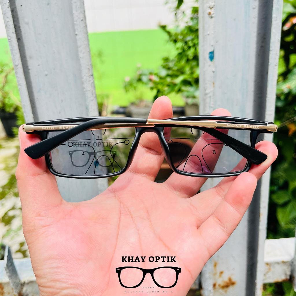 Kacamata Baca/Plus Progresif Photocromic/Bluecromic Pria Wanita Hitam Frame List Gold