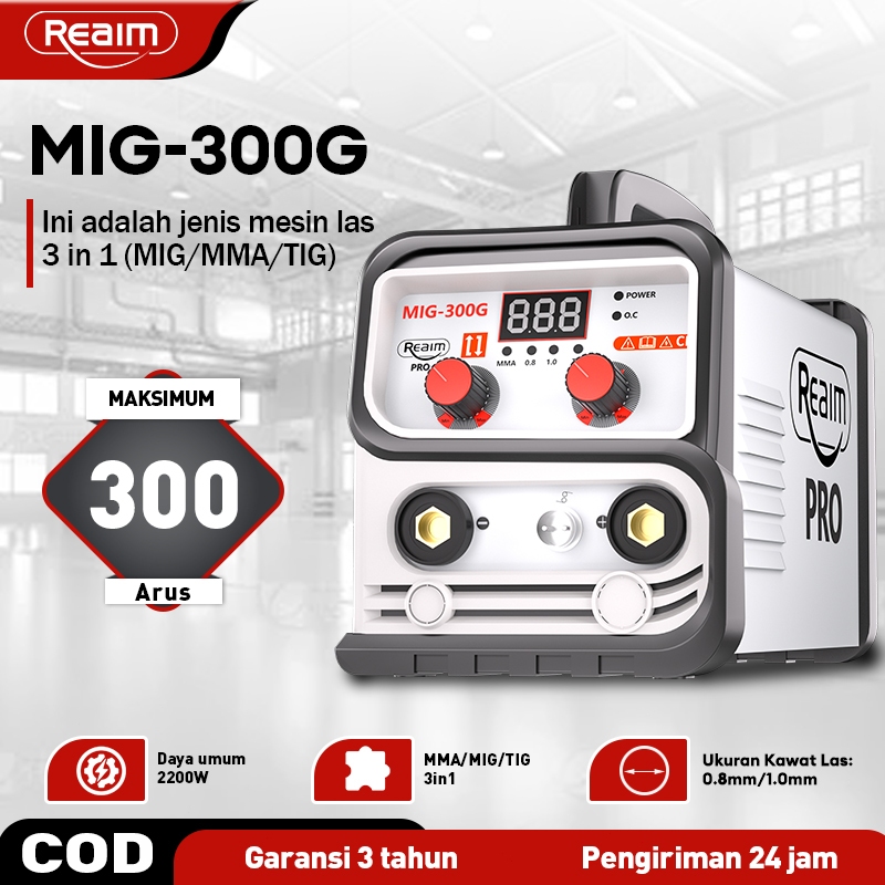 REAIM Mesin Las Inverter IGBT Portabel Mesin Las Portabel MIG-300G Set Las dengan Alat Las Gratis