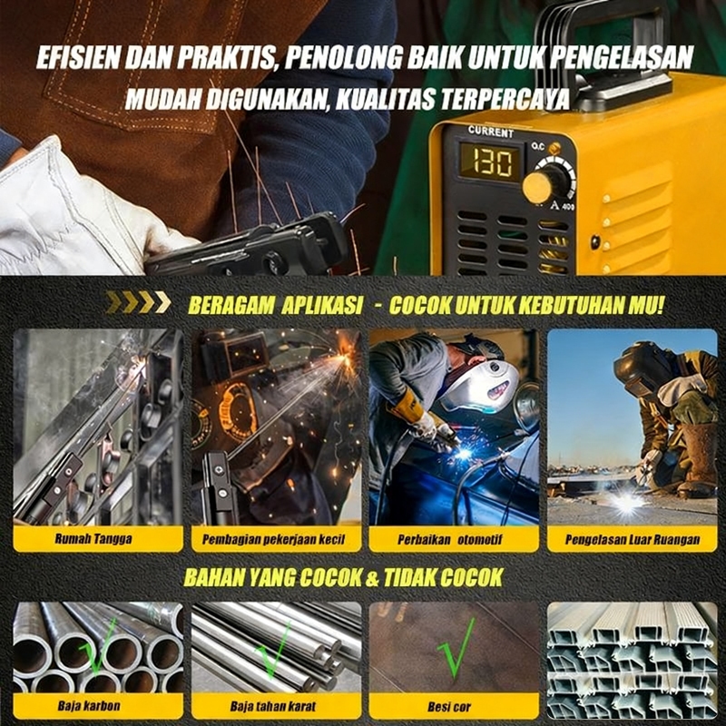 Mesin Las Inverter Portable 220V 20-250A 450W - Set Lengkap Timah Solder + Gunting Las