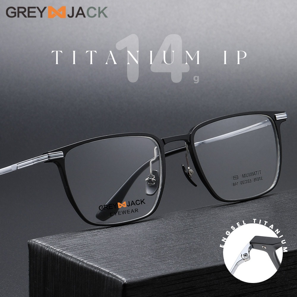 Grey Jack Kacamata Model Kotak Half Bahan Titanium IP Bisnis Pria Wanita Bisa Minus Lensa Plano 37076