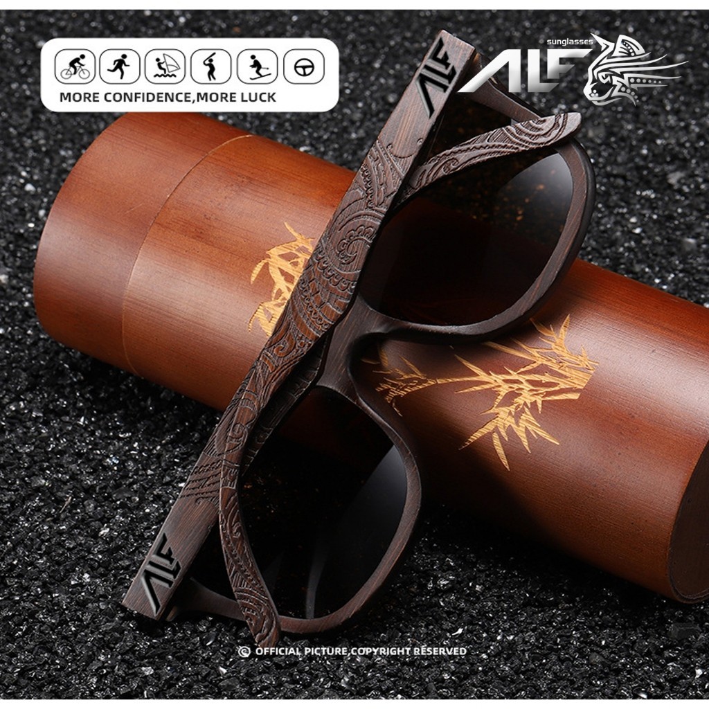 PROMO | Kacamata Hitam Polarized ALF Kayu coklat Elegant Anti Mainstream