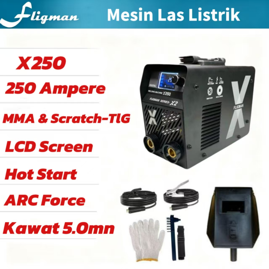 mall inline badgeFligman Mesin Las Listrik MMA 250 Ampere X2 X250 Travo DC Inverter IGBT ARC Lift TIG Argon Trafo