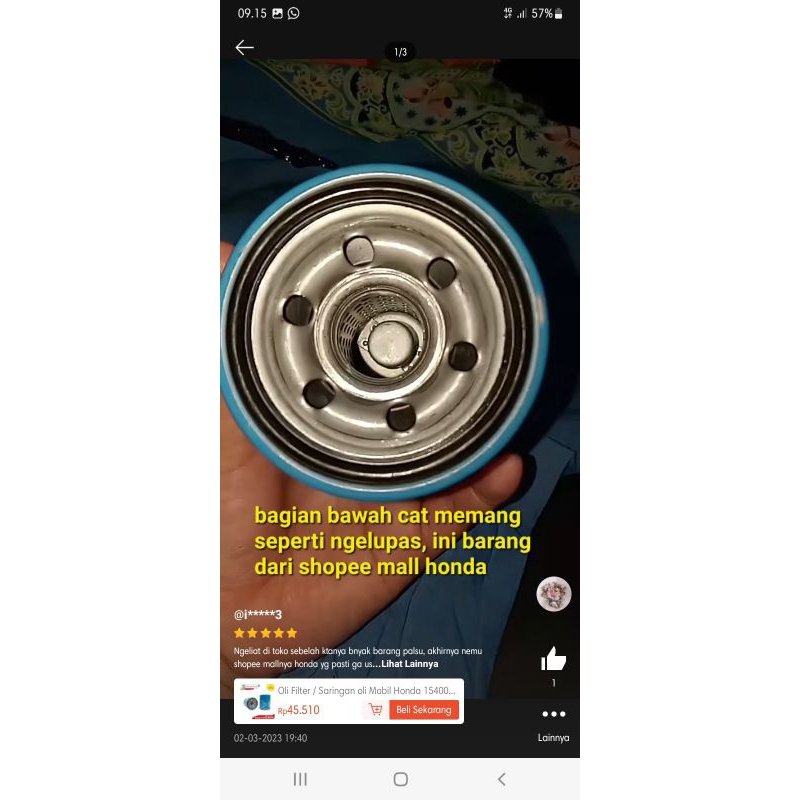 FILTER OLI SARINGAN OLI MOBIL HONDA 15400 RK9 F01 JAZZ BRIO MOBILIO CRV HRV ALL HONDA JAMINAN ORIGINAL