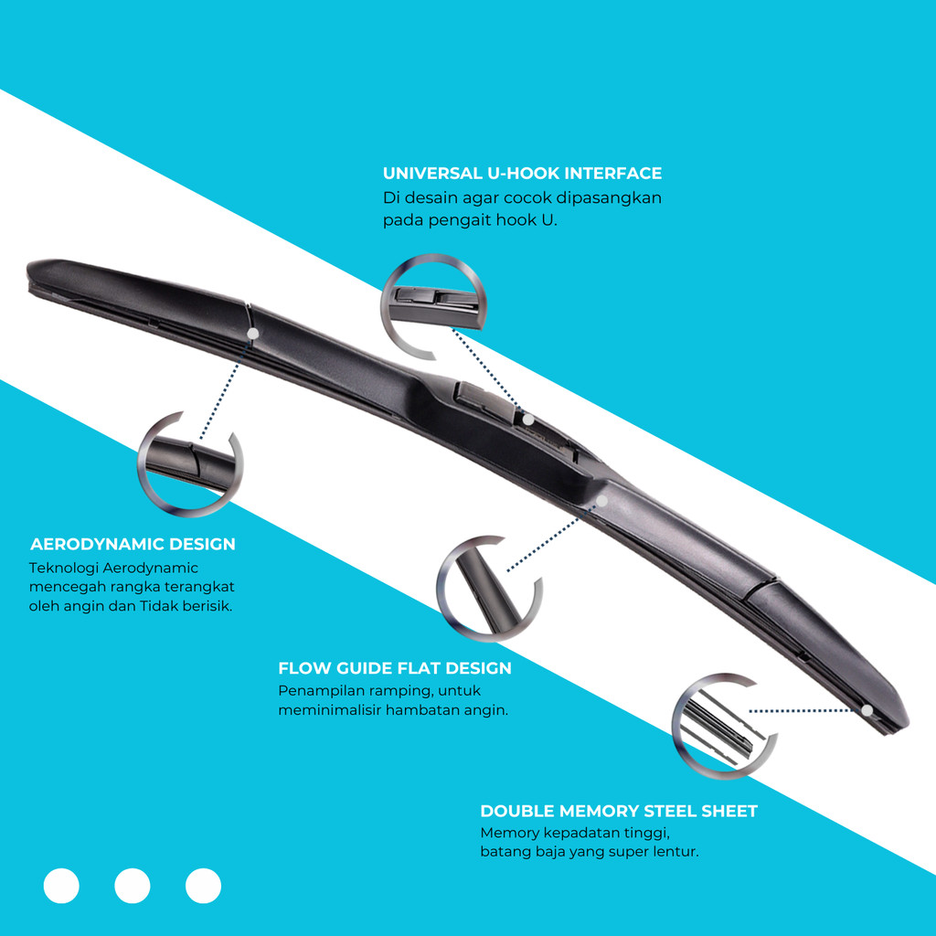 Wiper Mobil hybrid Blade Universal 1 Set Kiri dan Kanan Pembersih Kaca Depan Paket Bonus Sabun Wiper