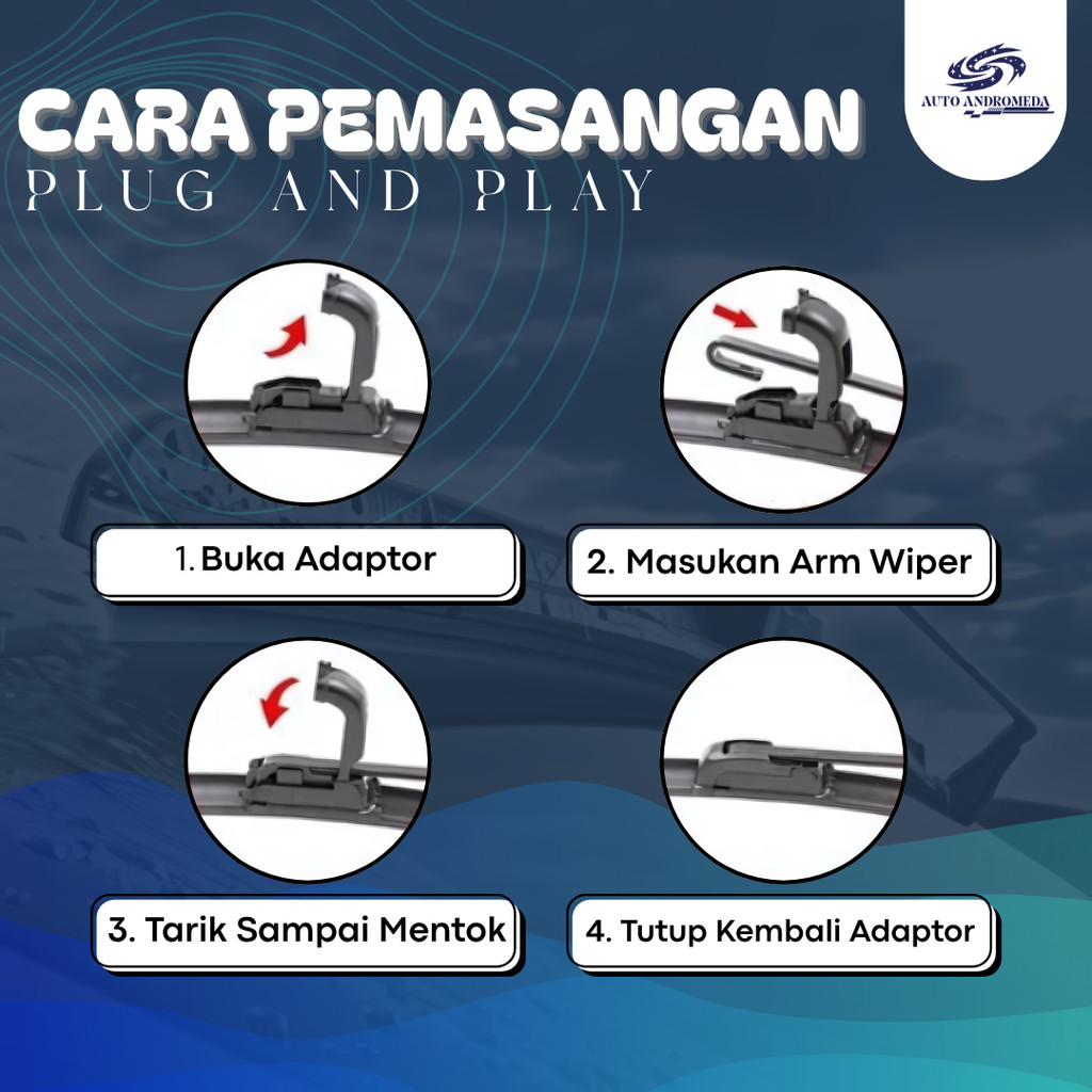 Wiper Frameless Blade Universal 1 SetKiri Kanan Hemat StylishCocok Semua Mobil