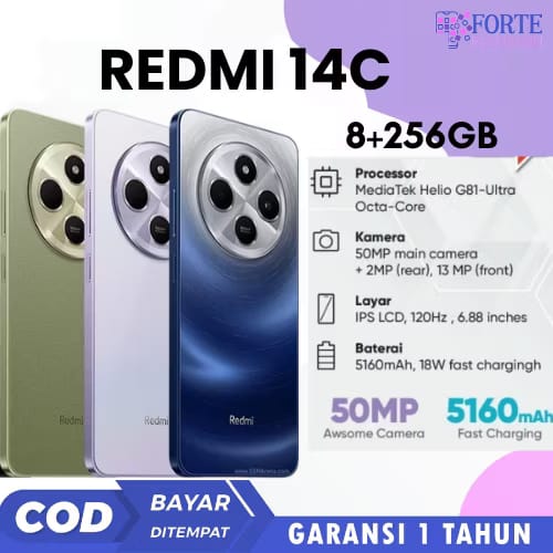 NopiPhone - NFC VERSI Hp XIAOMI REDMI 14C 8/256gb Baru ORI Resmi Fullset segel 5160mAh | 6.88inch