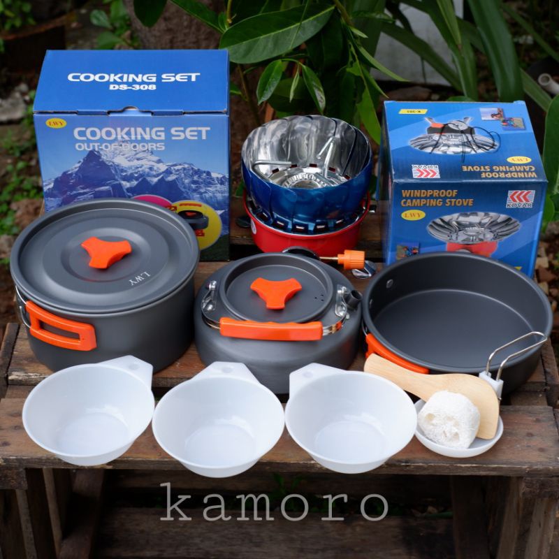 Paket Cooking Set Teko DS 308 Plus Kompor Windproof K203