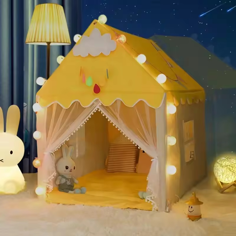 Tenda Bermain Anak Jumbo Model Rumah Dekorasi Portable Dengan Varian Warna Pink, Biru dan Kuning