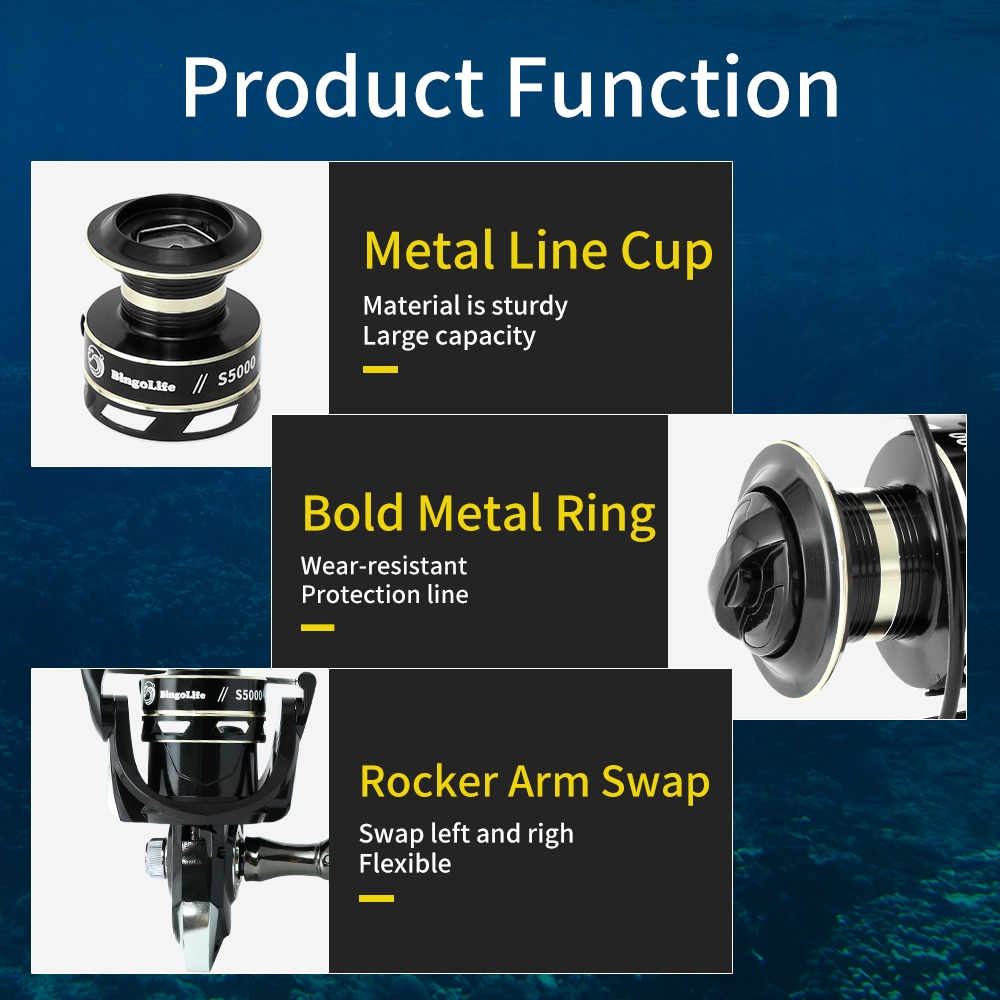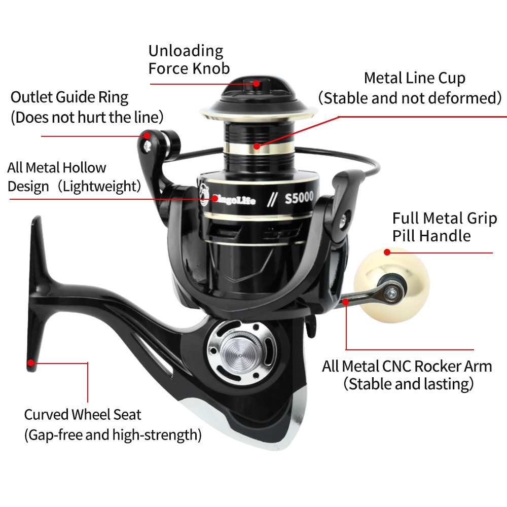 Reel Pancing Logam Penuh S1000-S7000 Tarik Maksimal 15kg 5.2:1 CNC Wire Cup Stainless Steel Bantalan Tunggal Gulungan Memancing