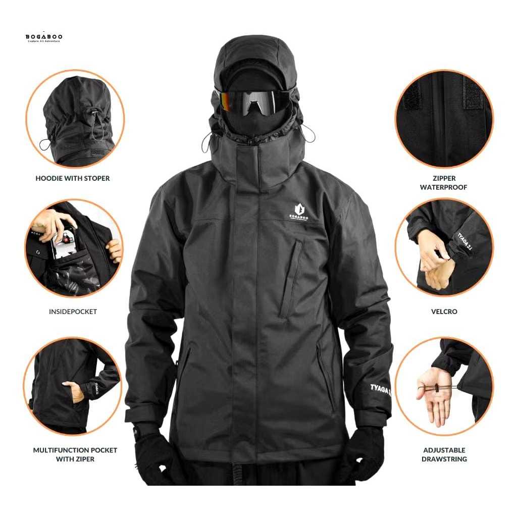 BOGABOO JACKET 3 LAYER TYAGA WATERPROOF Pria Wanita - Jaket Anti Air Inner Jaring - Jaket Hoodie Gunung Outdoor Hiking