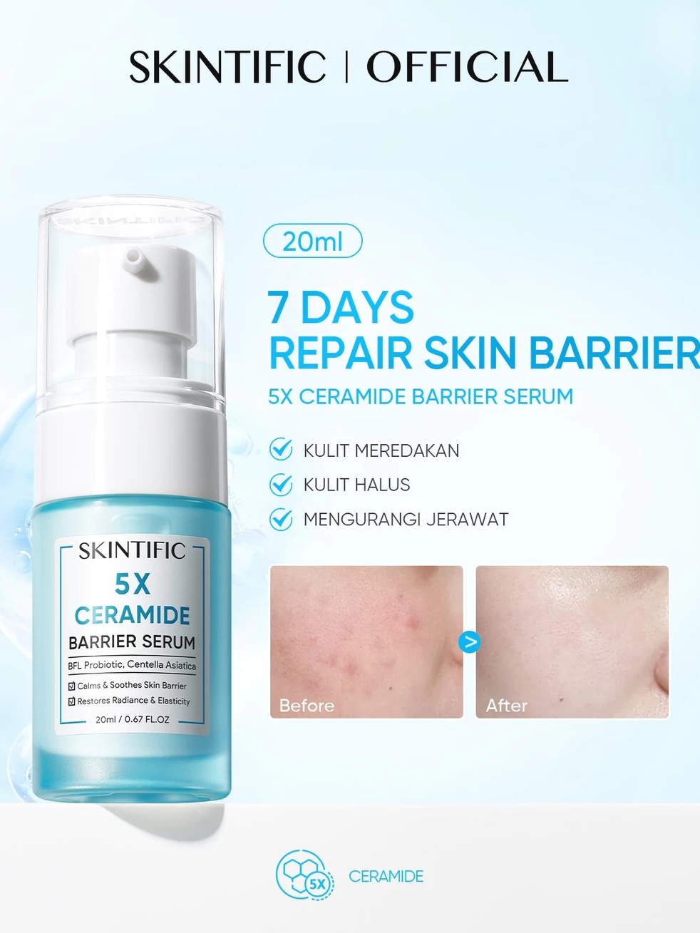 SKINTIFIC - 5X Ceramide Barrier Serum 50ml | Merawat skin barrier Serum Mencerahkan Dark Spot Tumpas Komed