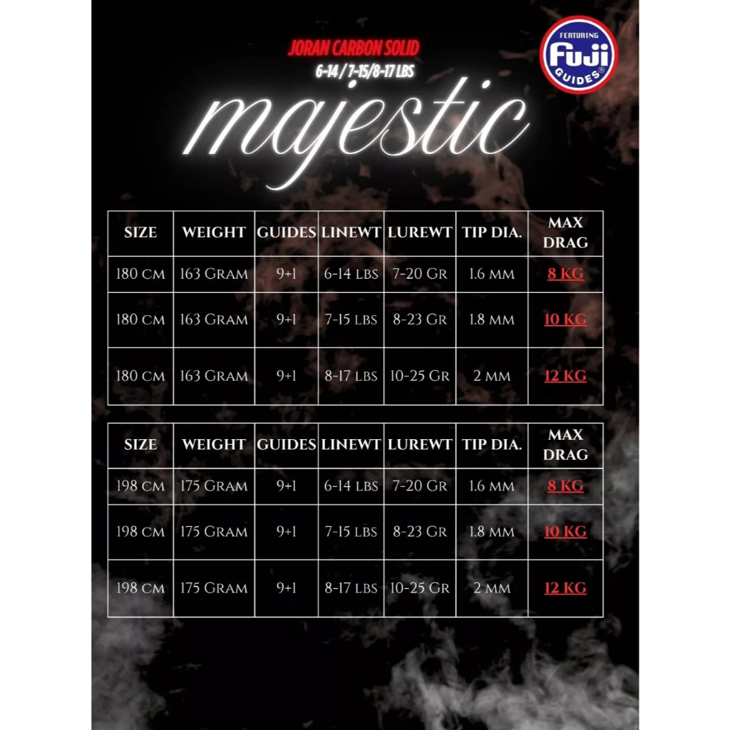 Joran Carbon Solid Fuji Casting Kolam Laut 6-14 7-15 8-17lbs Monocoque Handle Majestic FUKUSHIMA