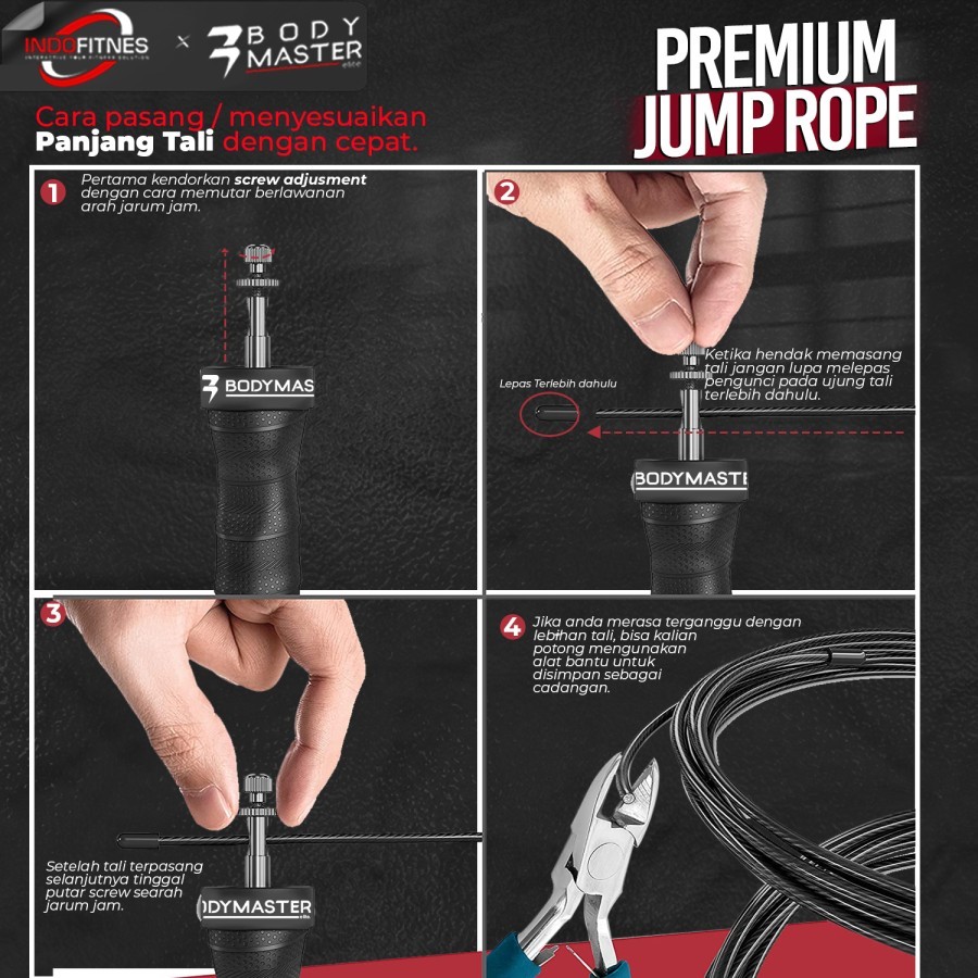 BODYMASTER Premium Jump Rope BM R130 4mm Bearing Tali Skiping Speed Skipping