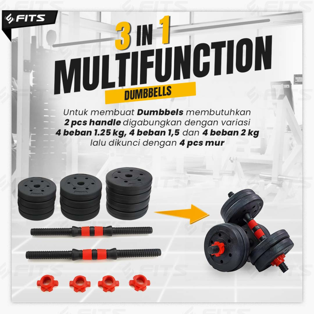 SFIDN FITS 3 IN 1 Adjustable 20kg Dumbell Barbel Dumbbell Barbell Set