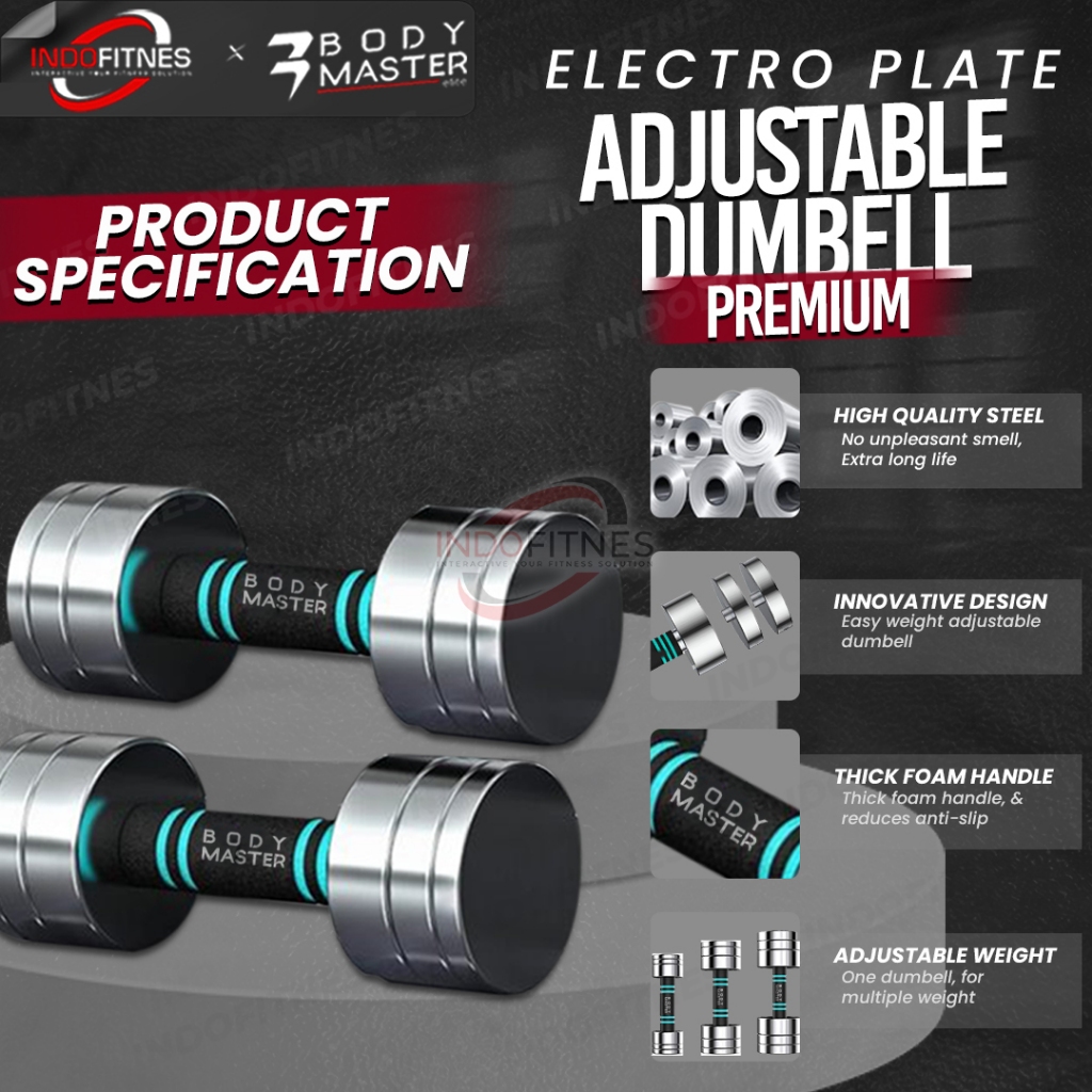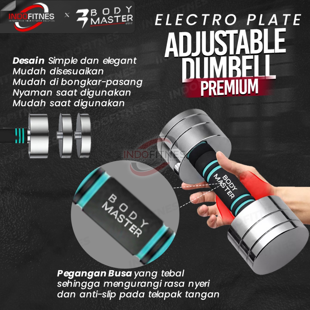 BODYMASTER Premium Adjustable Dumbell 5kg Barbell Dumbel Electroplate
