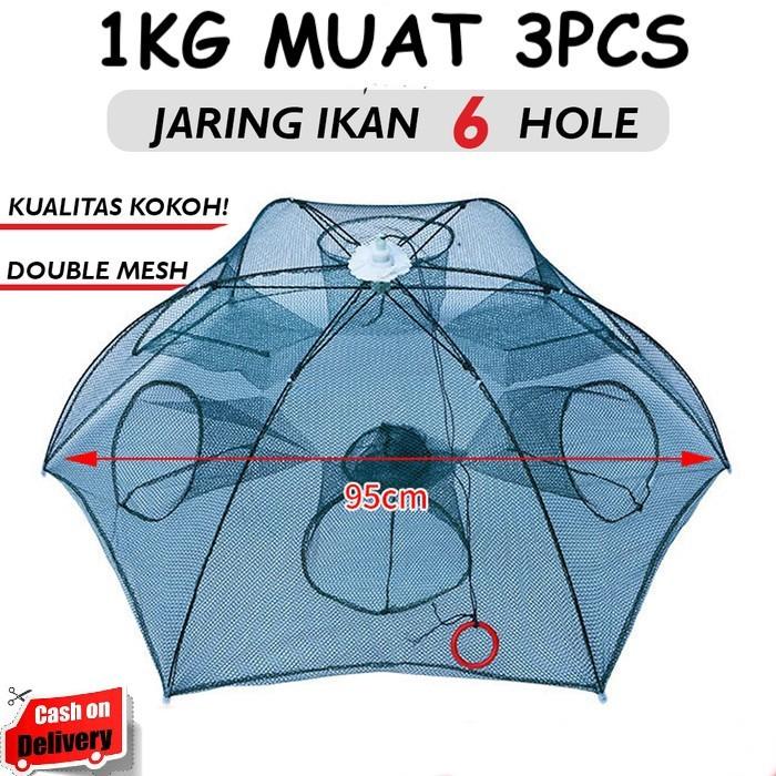 SALE !! JARING PENANGKAP IKAN UDANG CUMI JALA PANCING KEPITING 6 LUBANG BUBU PORTABLE - 6 LUBANG TERMURAH