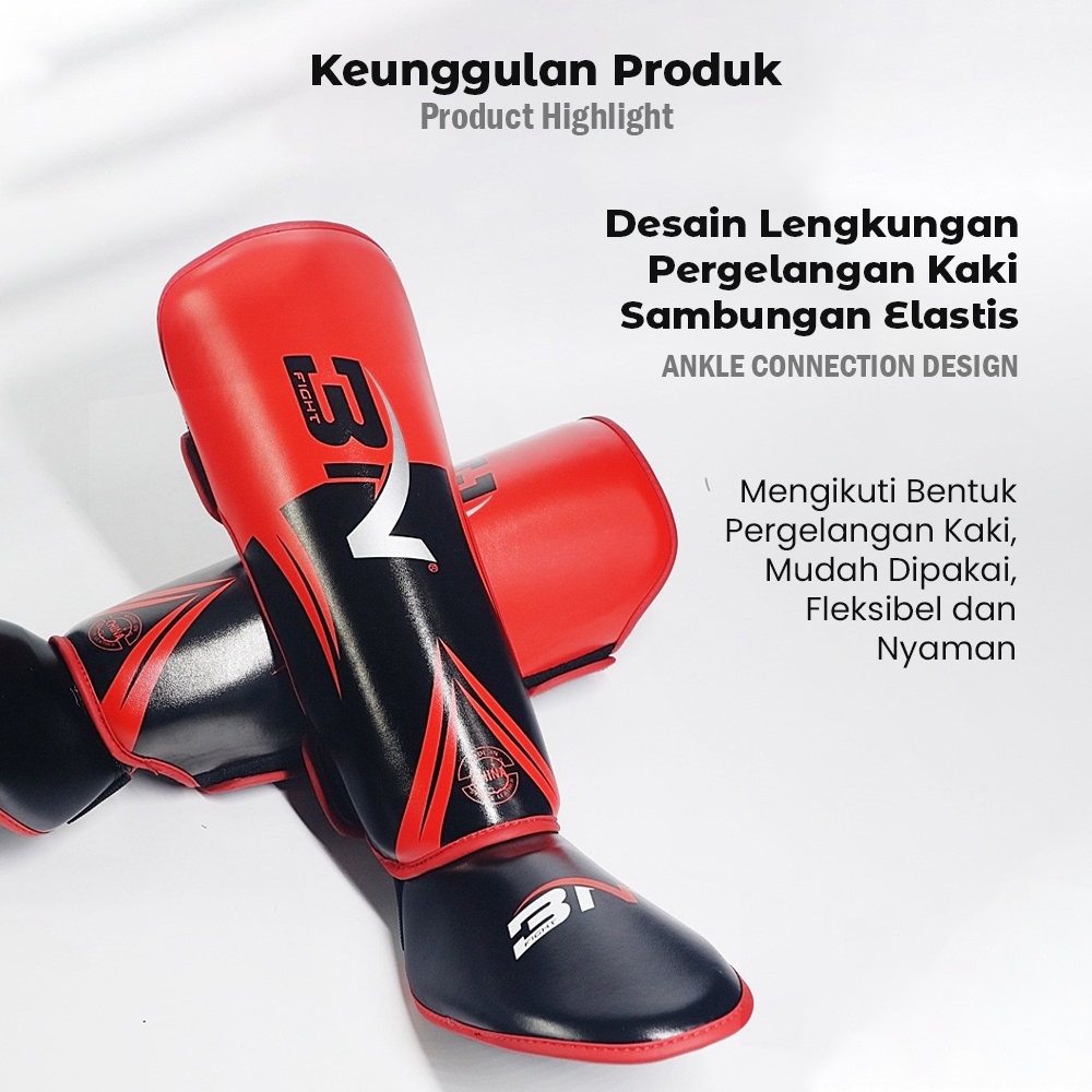 Pelindung Kaki BN Fight Shin Guard Dewasa Leg Protector Tinju Kickboxing MMA Muay Thai Taekwondo Pelindung Tulang Kering dan Punggung Kaki
