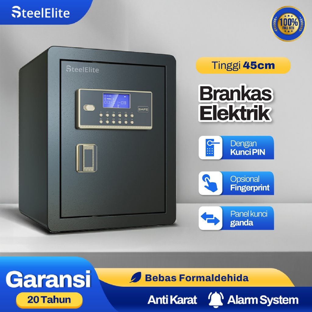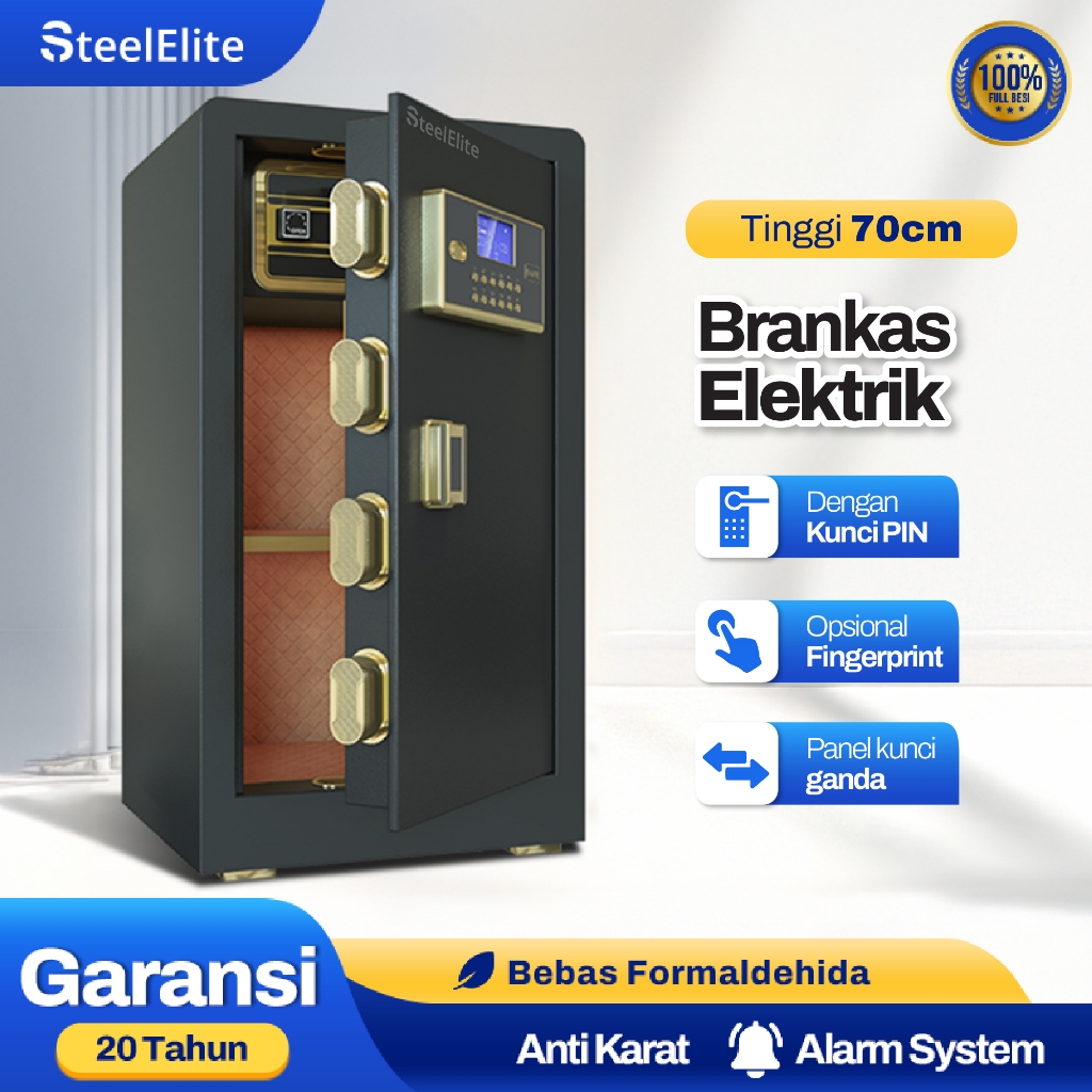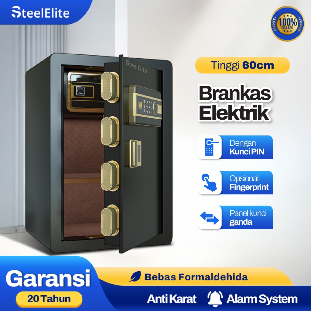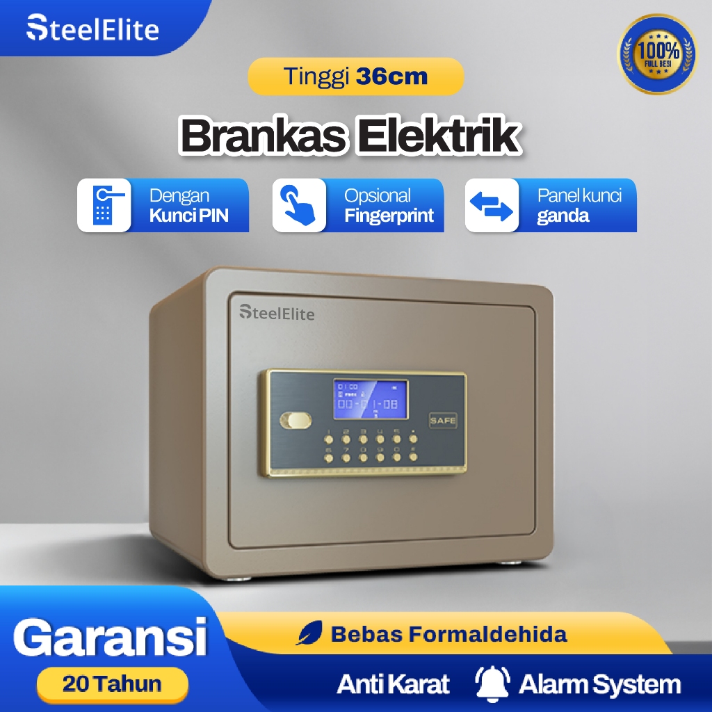 Brankas Besi STEEL ELITE Gold Fitur Brangkas Mini Baja tahan api/ kantor Rumah Passwor Sidik Jari Dokumen Perhiasan