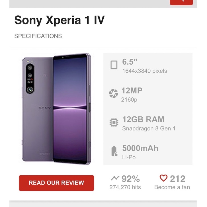 Sony Xperia 1 IV 12GB 512GB Snapdragon8 Gen1 Inter