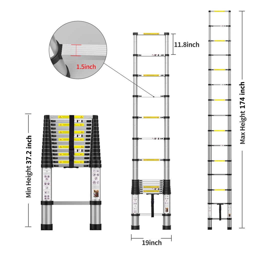 Boweiti Tangga Teleskopik Aluminium 2.6m-8m Berbagai Spesifikasi