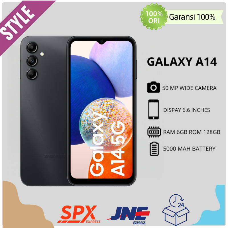 HP Galaxy A14 5G 6/128GB – Kamera 50MP, Baterai 5000mAh, Garansi Toko 1 Tahun