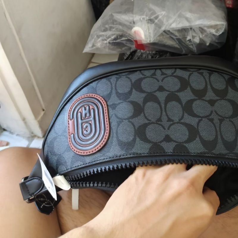 TAS COACH RIVINGTON BELT BAG SIGNATURE CANVAS WITH PATCH 79037