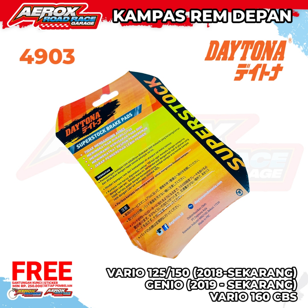 KAMPAS REM DEPAN BELAKANG DAYTONA GENIO NEW VARIO 125 150 160 CBS TOKICO NEW SUPERSTOCK 4903 5059 ORIGINAL ASLI