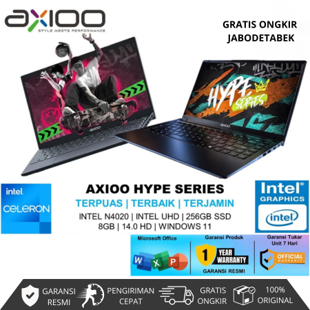 【TANPA DP】LAPTOP AXIOO HYPE SERIES - INTEL N4020 8GB RAM 384GB SSD WINDOWS 11 slim murah officialstore mahasiswa pelajar