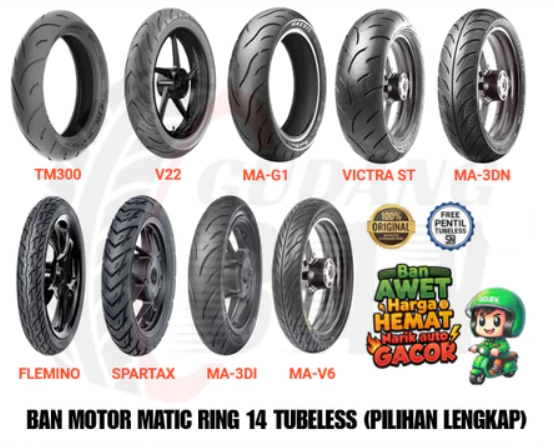 MA-V6 70/90-14, MA-V6 80/90-14, MA-V6 90/90-14, VICTRA 80/90-14, VICTRA 90/90-14, TM-300 ( 80/90-14 ), TM-300 ( 90/90-14 ), DIAMOND 70/90-14, DIAMOND 80/90-14, DIAMOND 90/90-14, DIAMOND 80/80-14, DIAMOND 90/80-14, DIAMOND 100/80-14, GREEN DEVIL 80/80-14, GREEN DEVIL 90/80-14, GREEN DEVIL 100/80-14, EXTRAMAXX 80/90-14, EXTRAMAXX 90/90-14, VICTRA 70/90-14, VICTRA 100/90-14, VICTRA 100/80-14, VICTRA 90/80-14, ON OFF 80/90-14 TL, ON OFF 90/90-14 TL, TM-100 ( 90/90-14 ), TM-325 ( 90/90-14 ), SPARTAX 70/90-14 TL, SPARTAX 80/90-14 TL, SPARTAX 90/90-14 TL, FLEMINO 80/90-14 TL, FLEMINO 90/90-14 TL, FLEMINO 100/90-14 TL, IRC EXATO 80/80-14, IRC EXATO 90/80-14