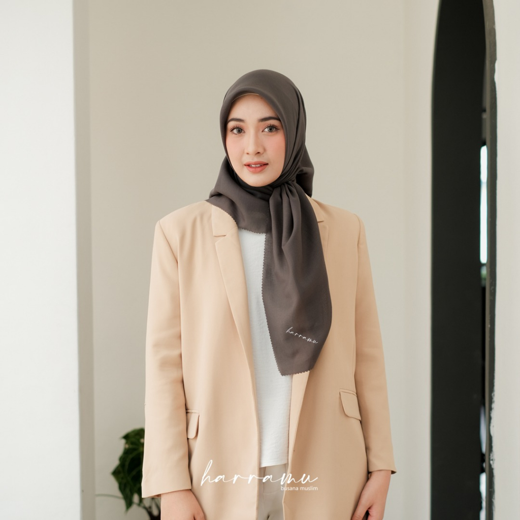 HARRAKU Hijab Voal Segiempat Polos Warna Abu Tua
