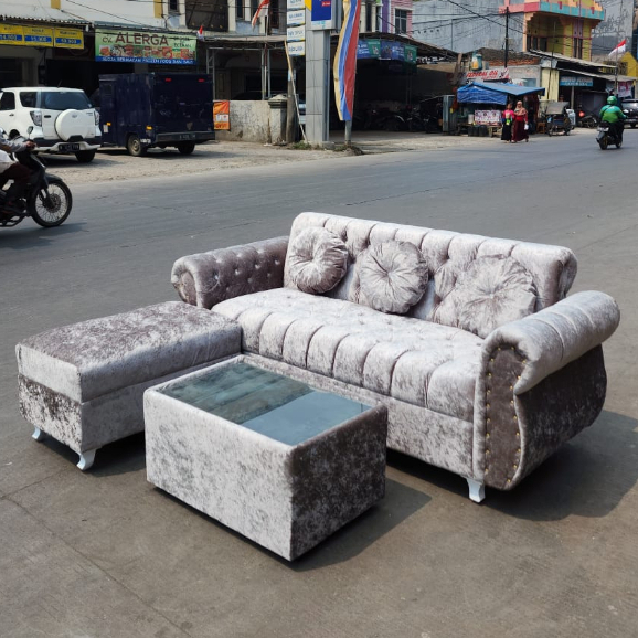 sofa ruang tamu Sofa 3 Seater + Bench Sofa L Putus sofa ruang tamu terlaris