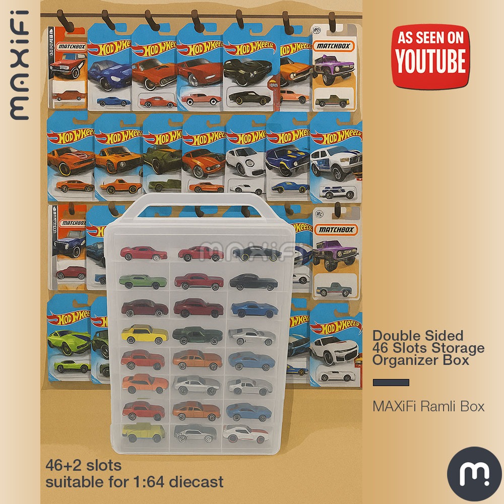 MAXIFI Ramli Box - 46 Slot Organizer Storage Plastic Box / Kotak Rak Hot Wheels Diecast 1:64