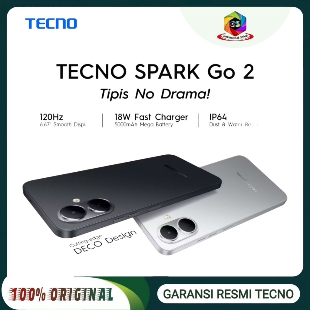 TECNO SPARK GO 2 [3/64 GB] [4/64 GB] [4/128 GB] - 5000mAh, 18W Fast Charger, IP64, 120Hz, GARANSI RESMI TECNO INDONESIA