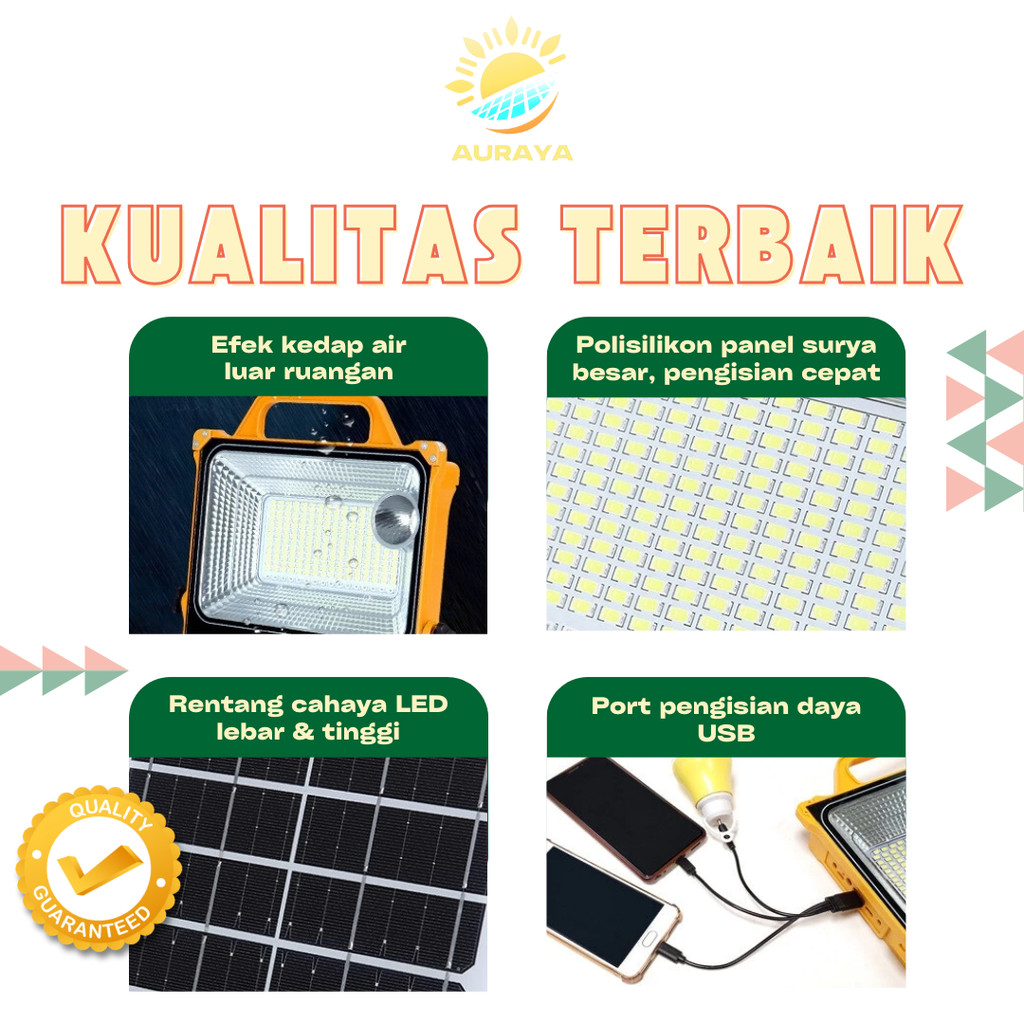 [Auraya]Lampu Emergency LED Solar Cell Outdoor Tenaga Surya Multifungsi Tahan Air Super Terang