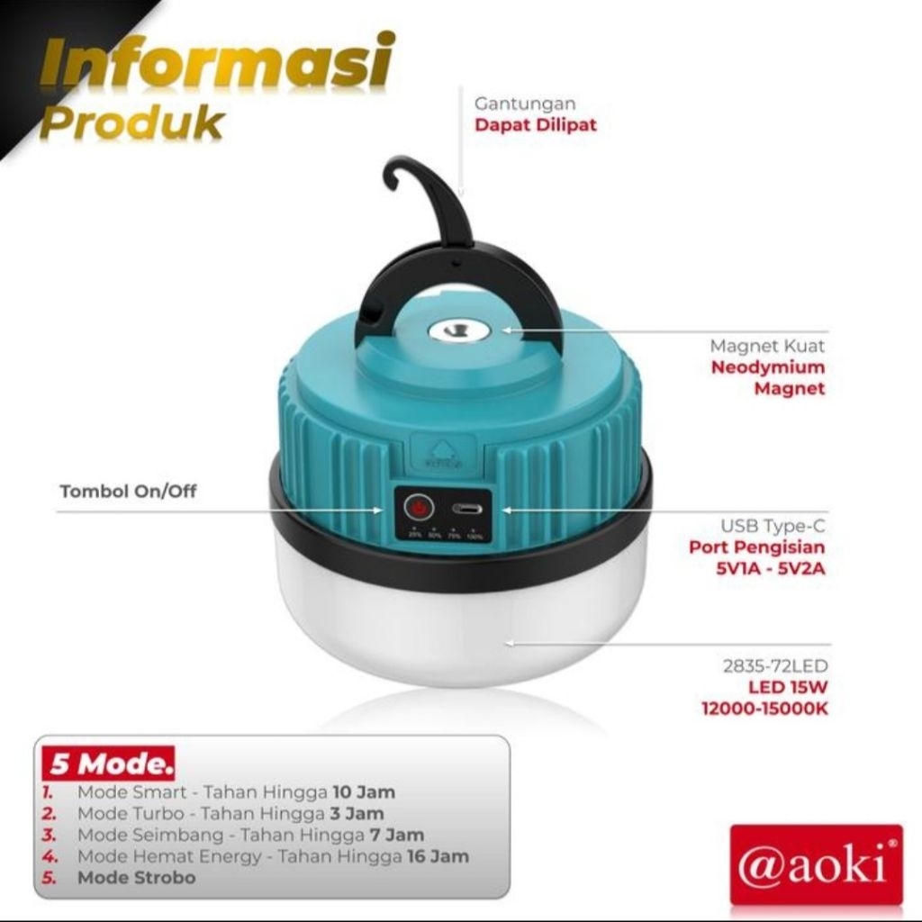 Aoki Lampu Emergency 42 LED / Lampu Gantung Darurat Camping AK-5201Q / 5202Q