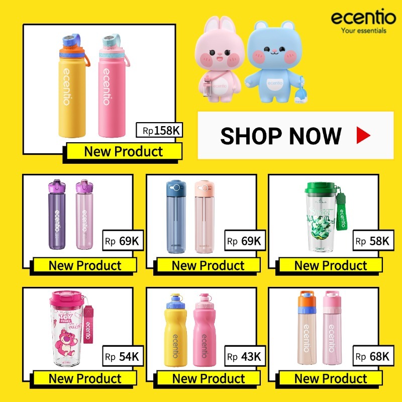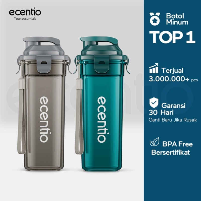 ECENTIO BOTOL MINUM PORTABLE 500ML AESTHETIC OLAHRAGA BOTTLE TAIL BENNING ANTI BOCOR BOTOL PLASTIK TUMBLER STAINLESS