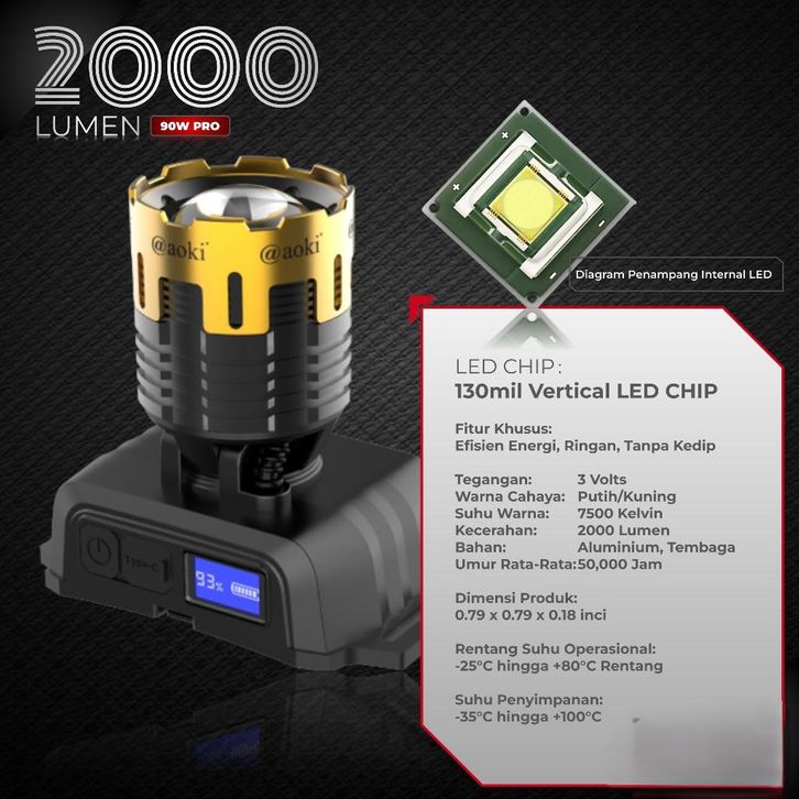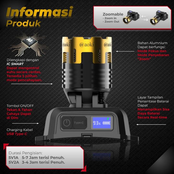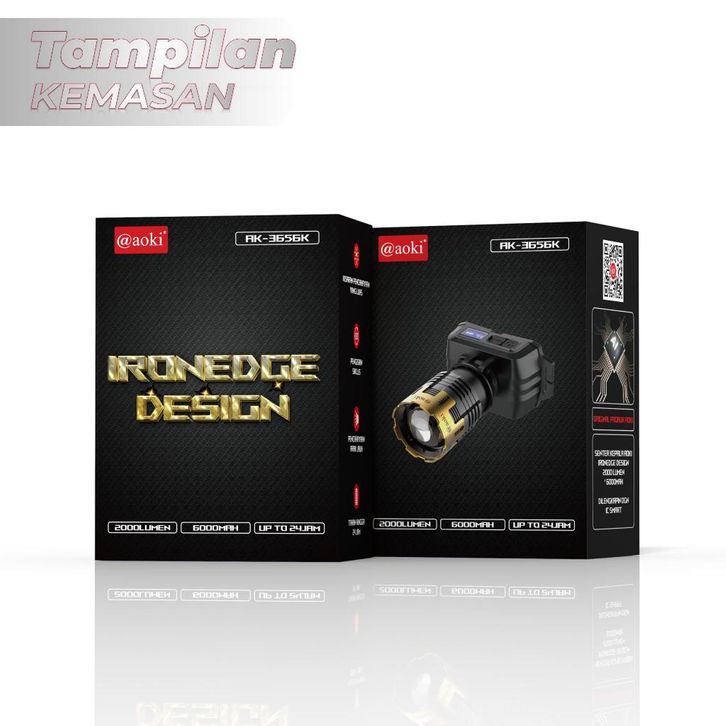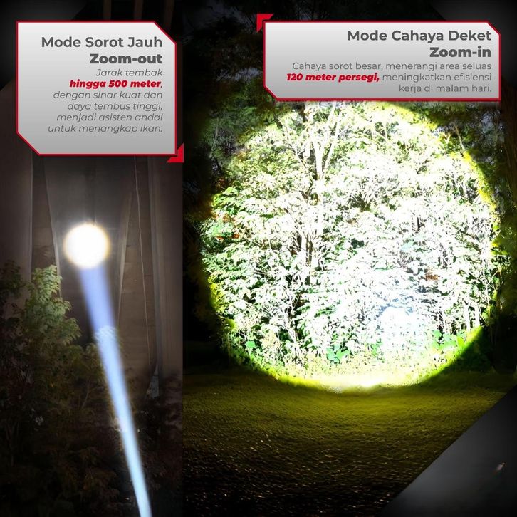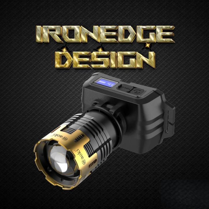 Lampu Kepala Super Terang LED IRONEDGE DESIGN, Cahaya Kuat Jarak Jauh, Zoom Fokus & Sinar Luas, Headlamp Rechargeable