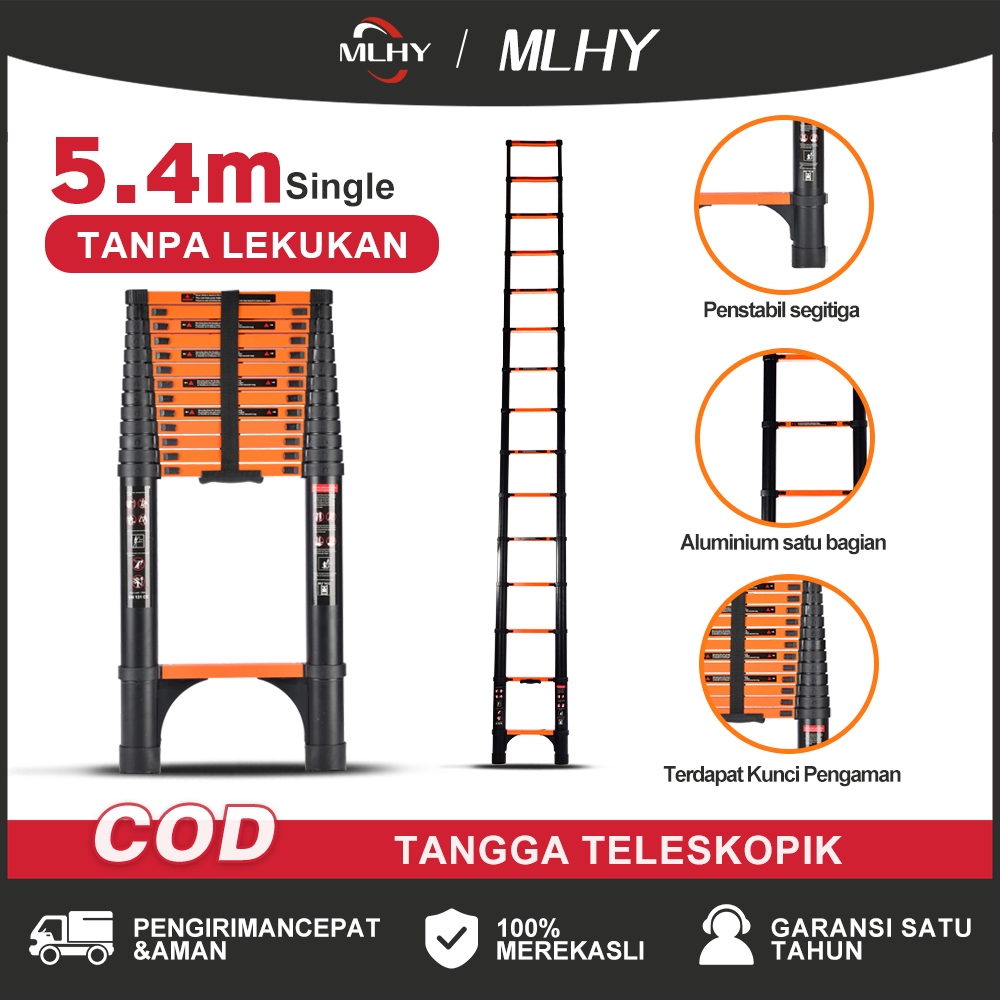 MLHY Tangga Teleskopik 5.4M Lipat Aluminium Telescopic Single Ladder 5.4M