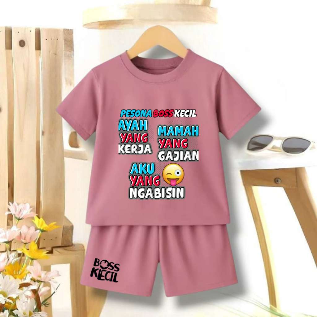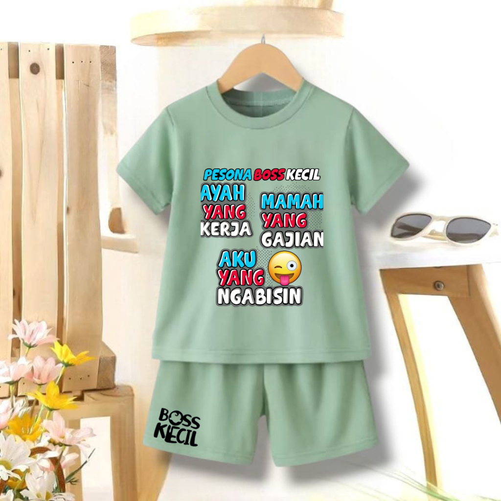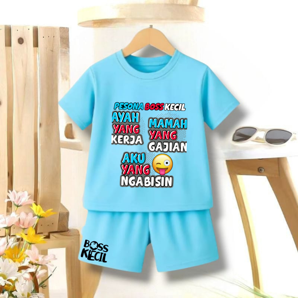 Setelan Kaos Anak Kata Kata Lucu Keren Pesona Boss Kecil Usia 2-12 Bahan Tebal Baju Dan Celana