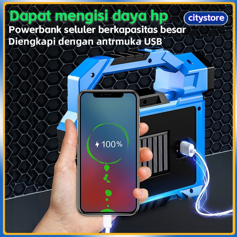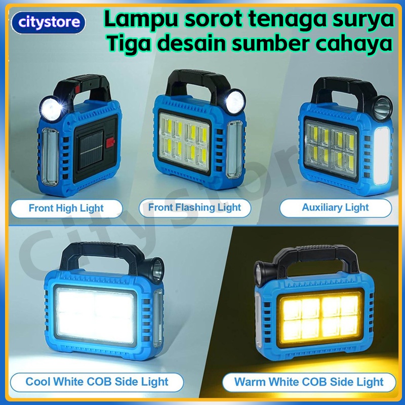 citystore-Lampu lentera senter emergency solar recharge / lampu emergency camping, lampu sorot portabel ringan yang kuat