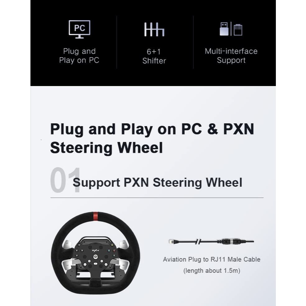 PXN A7 Gaming Steering Wheel 6+1 Gear Shifter A7 Racing Simulator Steering Wheel PC Windows