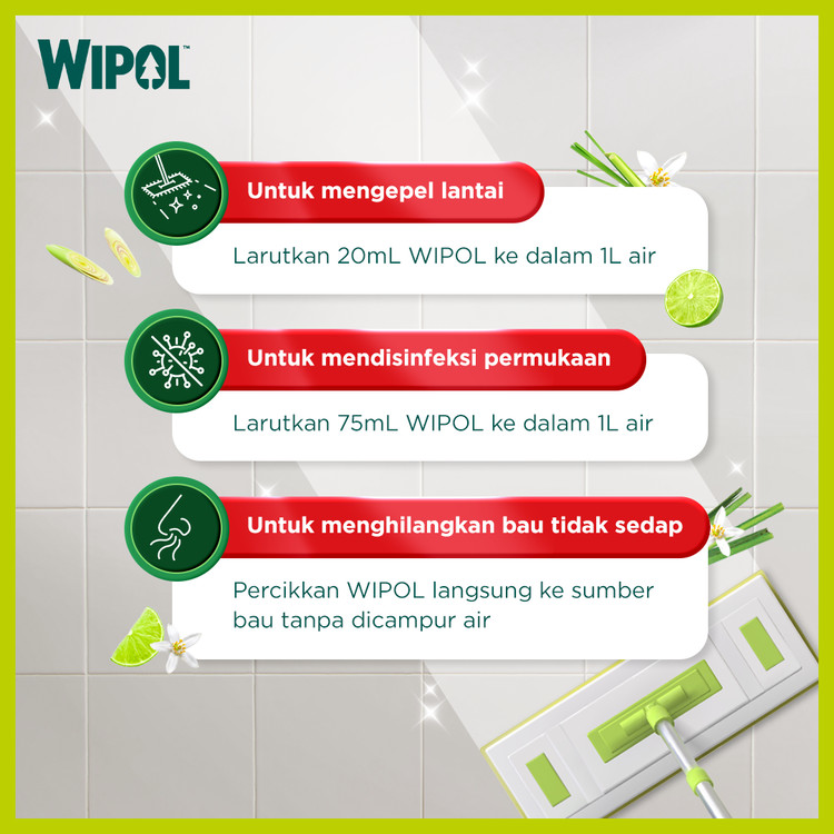 Wipol Pembersih Lantai Cairan Disinfektan Teruji Dermatologis Sereh & Jeruk 730g