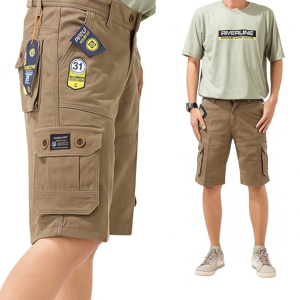 Riveline19 - Celana Cargo Pria Pendek Mocca Katun Premium