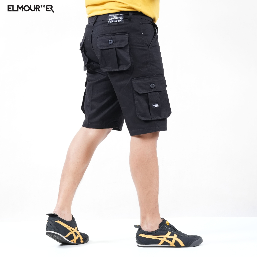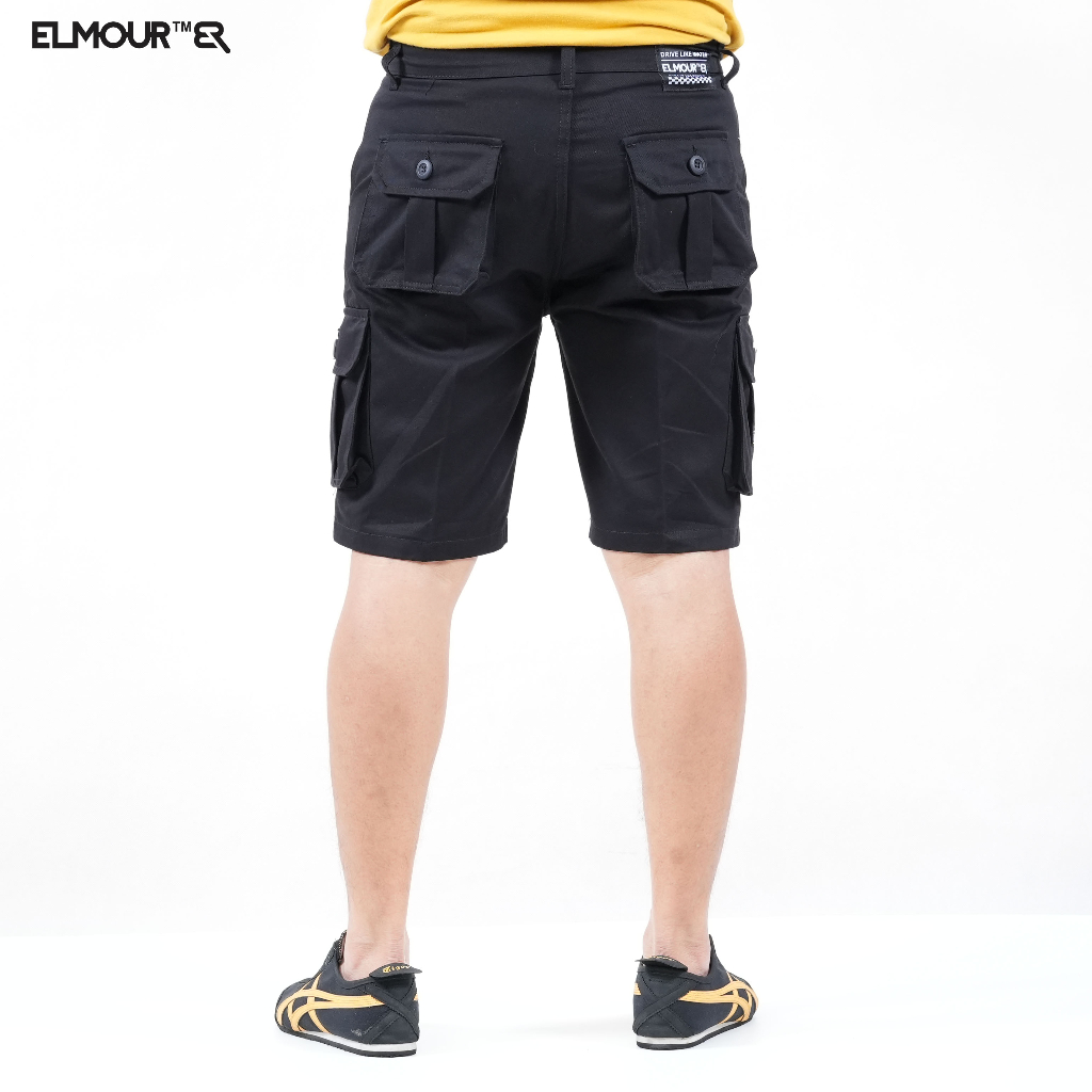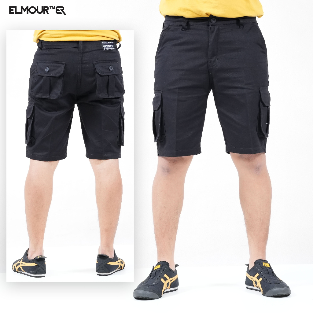 Elmour Celana Pendek Pria Cargo Hitam Katun Twill