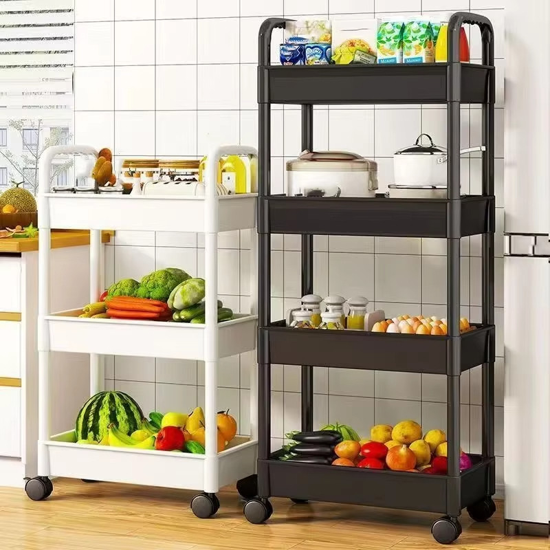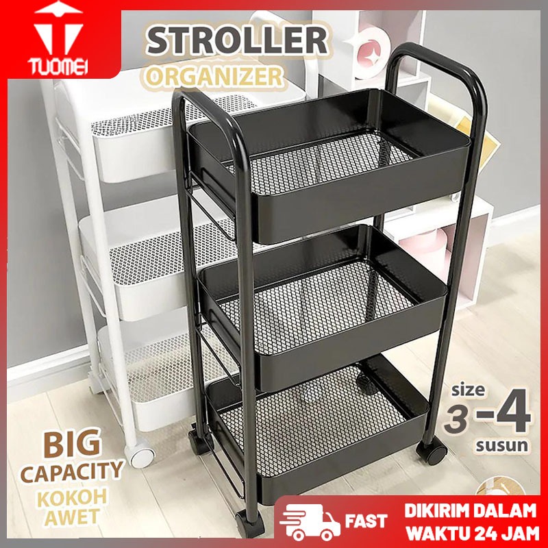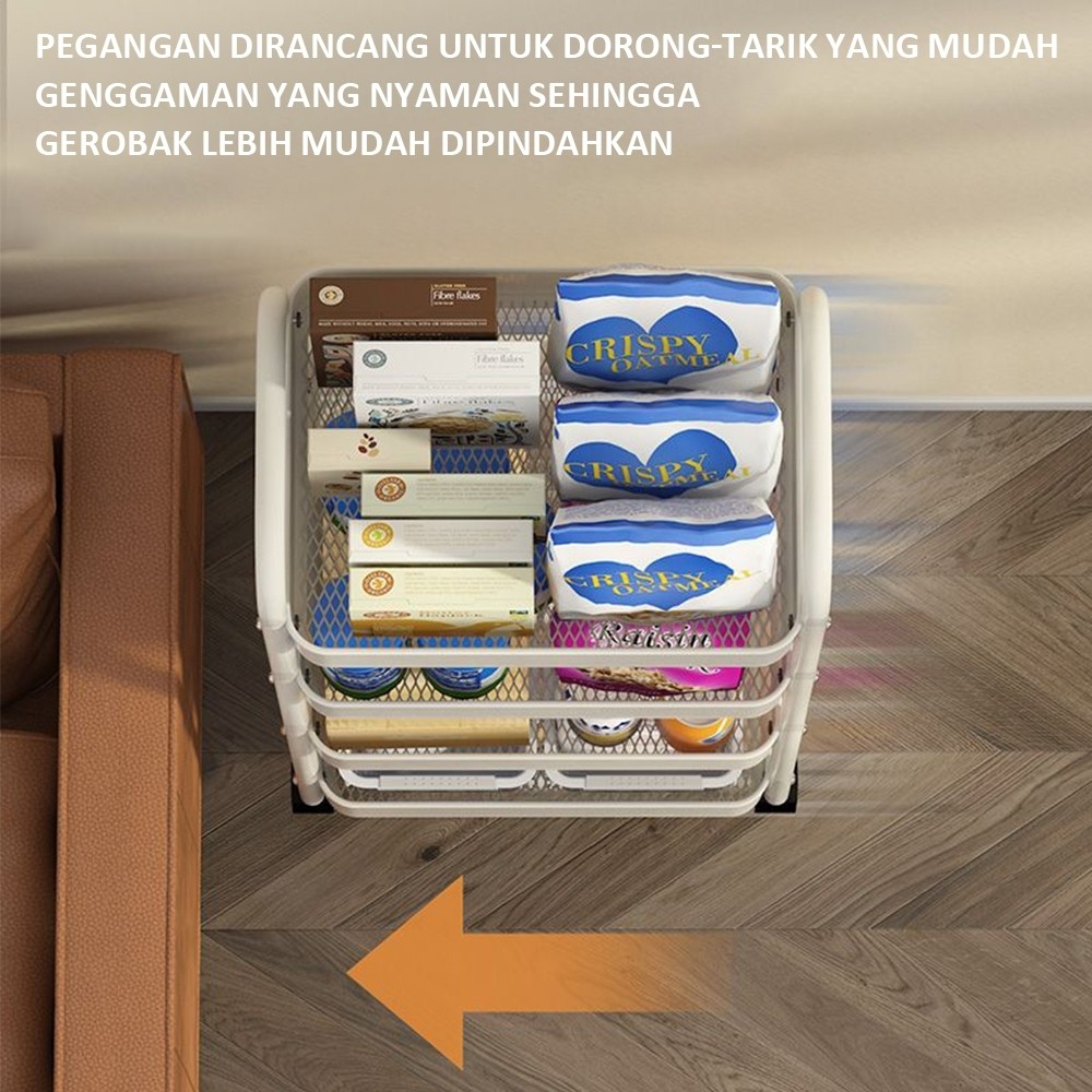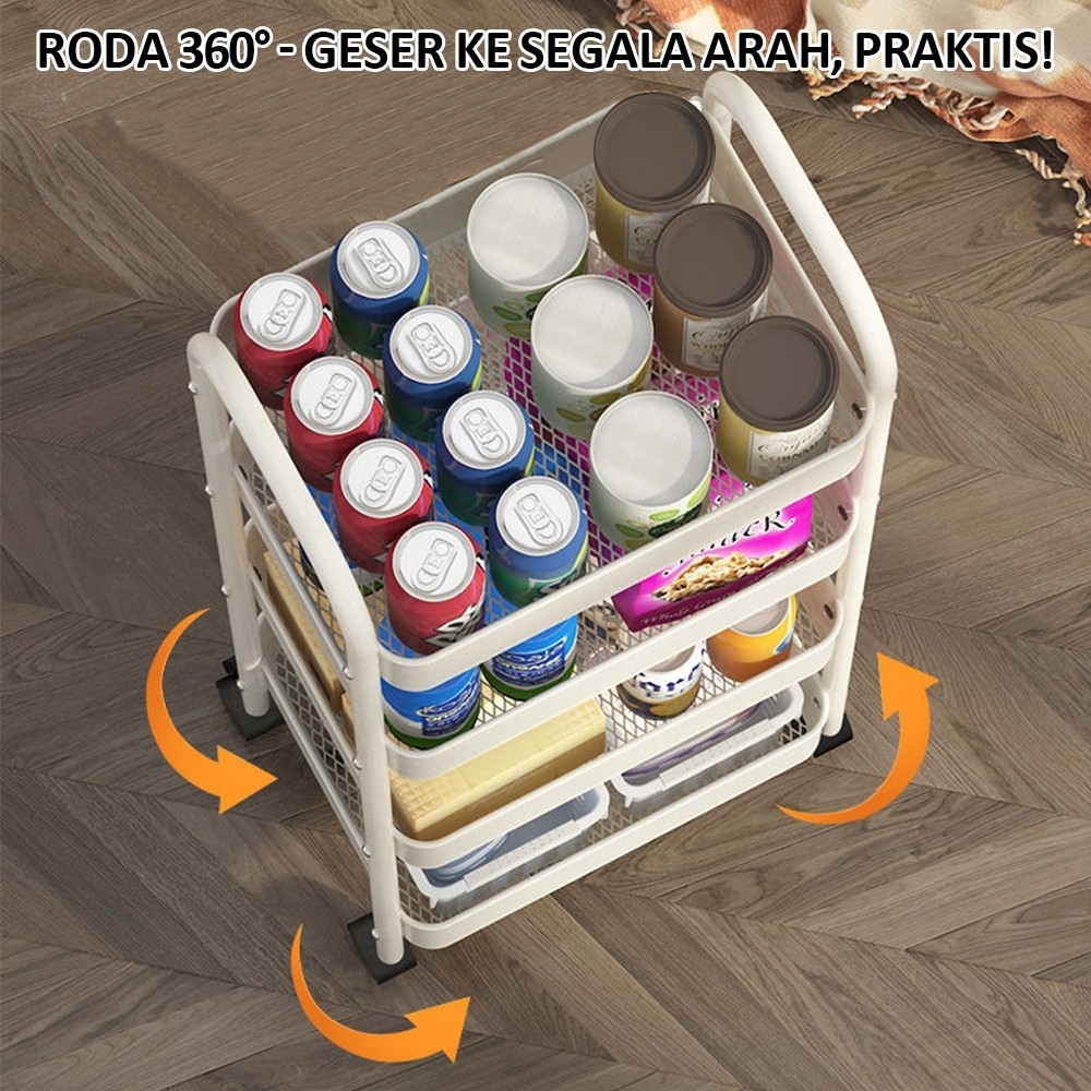 3 4 Susun Troley Besi Tingkat Rak Penyimpan Kosmetik Makanan Bumbu Dengan Roda Rak Troli Susun Serbaguna rak bawah meja