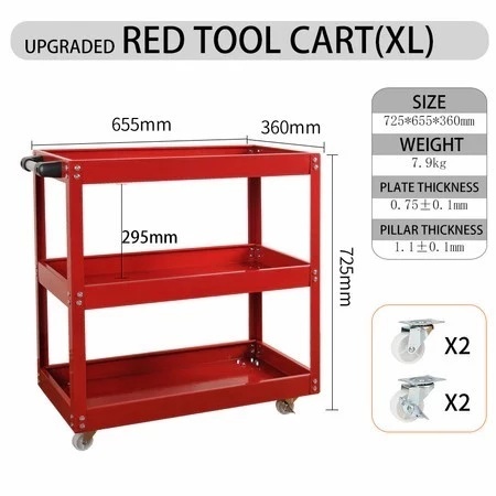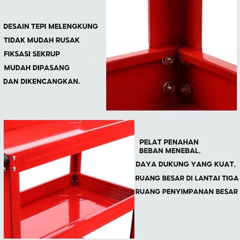 Troli Bengkel Rak 3 Susun Perkakas Trolly Trolley bantalan 150kg Kotak Peralatan Troli Dengan Peralatan Penyimpanan