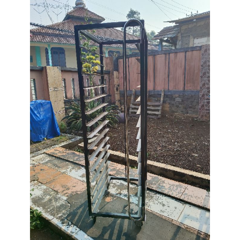 1 set troly rak loyang roti 15susun 60x40+cover profing anti debu/rak loyang bakery/rak loyang susun