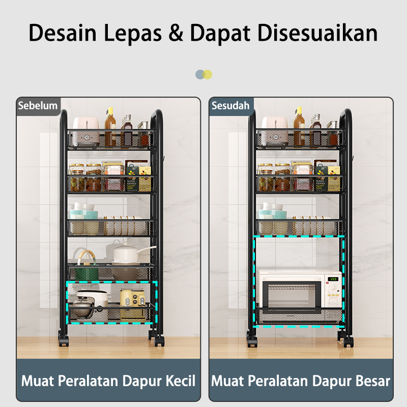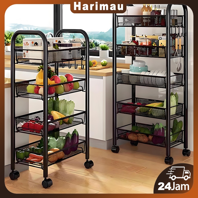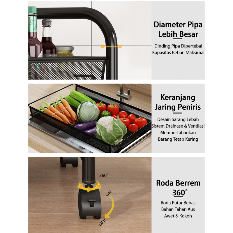 rak troli 3 /4 /5 susun dengan roda rak kamar mandi rak troli rak square rak dapur rak serbaguna