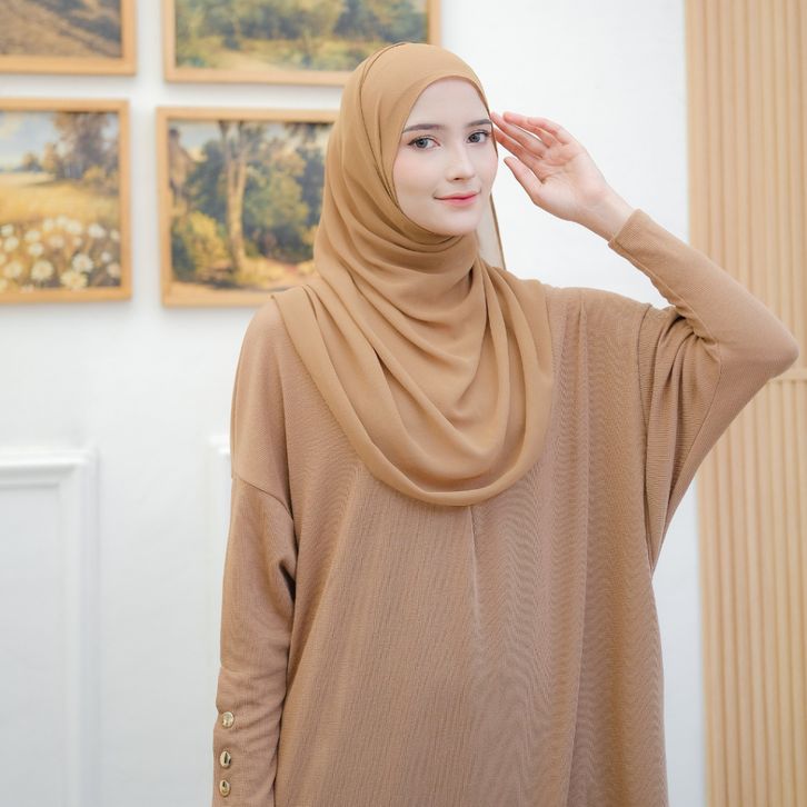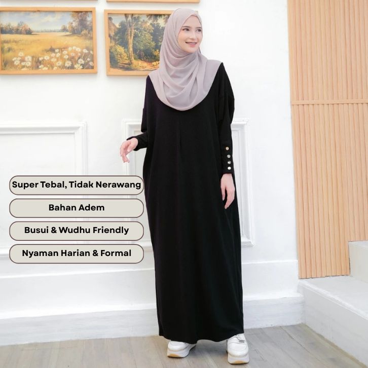Gamis baya Batwing Knit Dress Korean Style Busui Umroh Lebaran Haji Daily Fashfella
