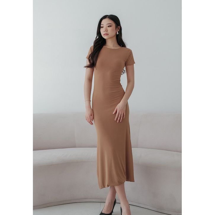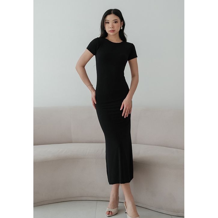 NZINGA Yuna | Dress Wanita Polos Lengan Pendek Maxi Body Fit Casual Chic | Ukuran S XXL
